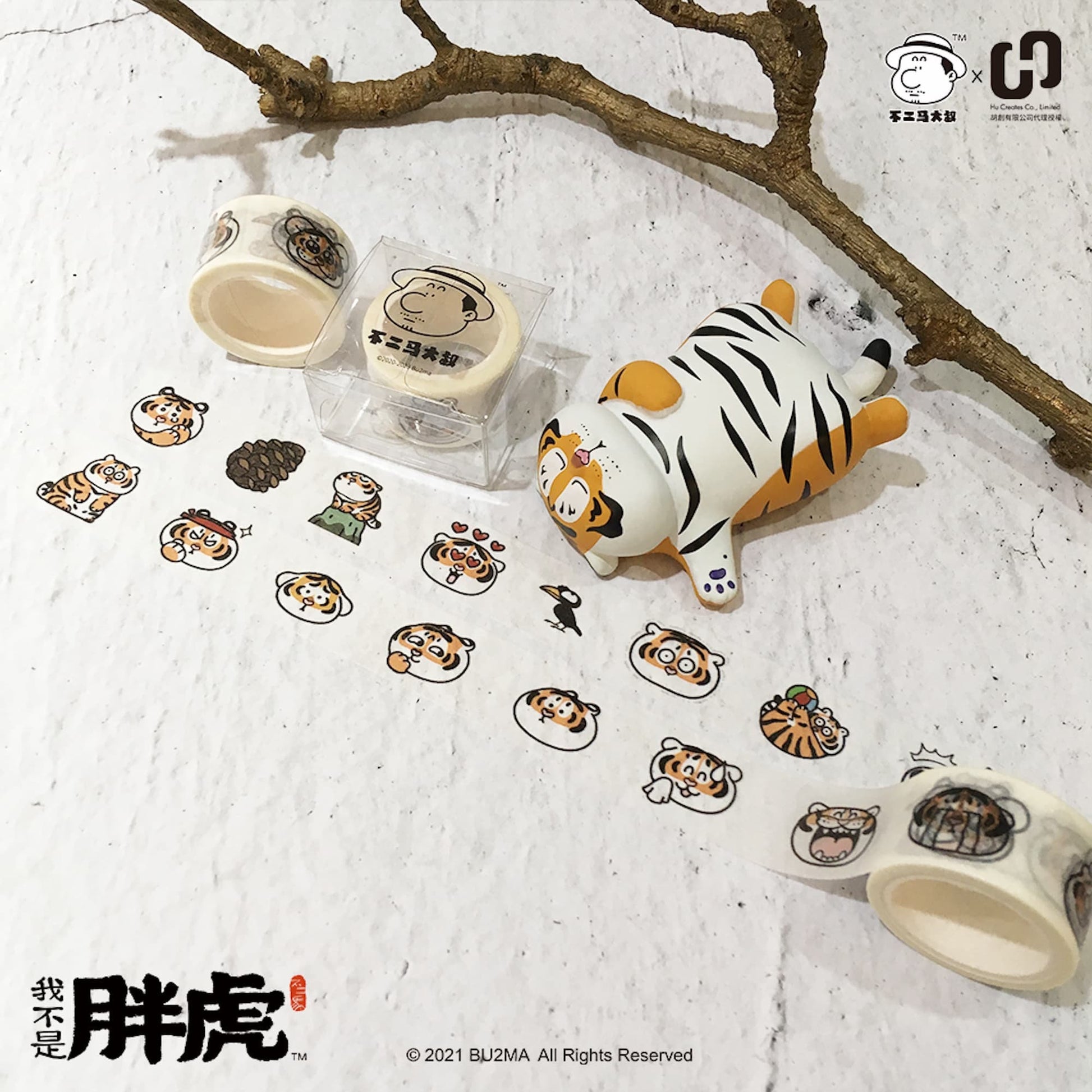 Fat Tiger Tapes With Cute Illustrations, 3 Types (Washi Tapes & Clear PET Tape), Bu2ma